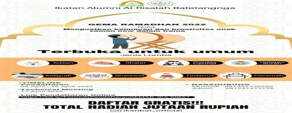 _Assalamu'alaikum warahmatullahi wabarakatuh_ *MARHABAN YA RAMADHAN* Dalam rangka menyemarakkan bulan suci Ramadan kami segenap IKATAN ALUMNI AL-RISALAH BATETANGNGA mengundang sodara/i untuk … Read More …