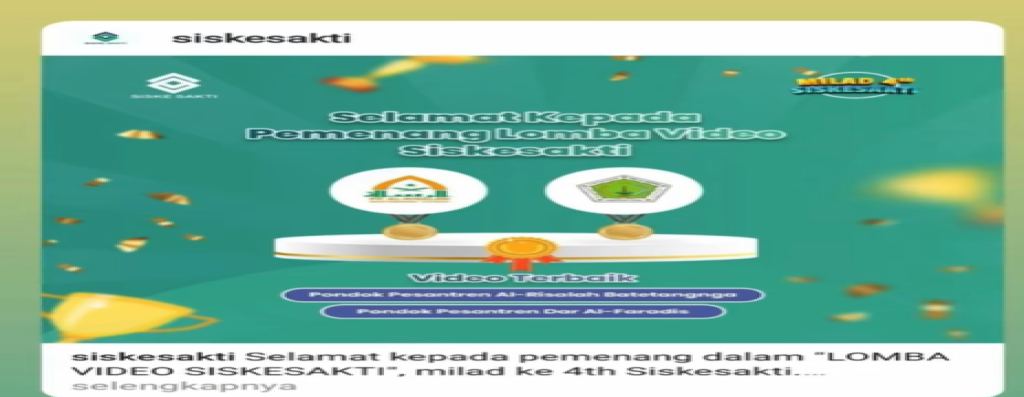 Selamat kepada Pemenang Lomba Video Siskesakti dalam Rangka Milad Ke-4 25 September 2024 Pondok Pesantren Al-Risalah Batetangnga dengan bangga mengucapkan selamat kepada para pemenang Lomba Video … Read More …